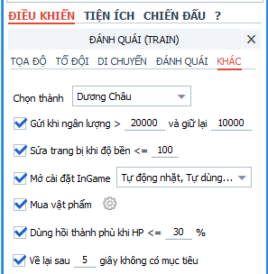 ==> Hướng dẫn cài đặt cơ bản cho chức năng Train quái: